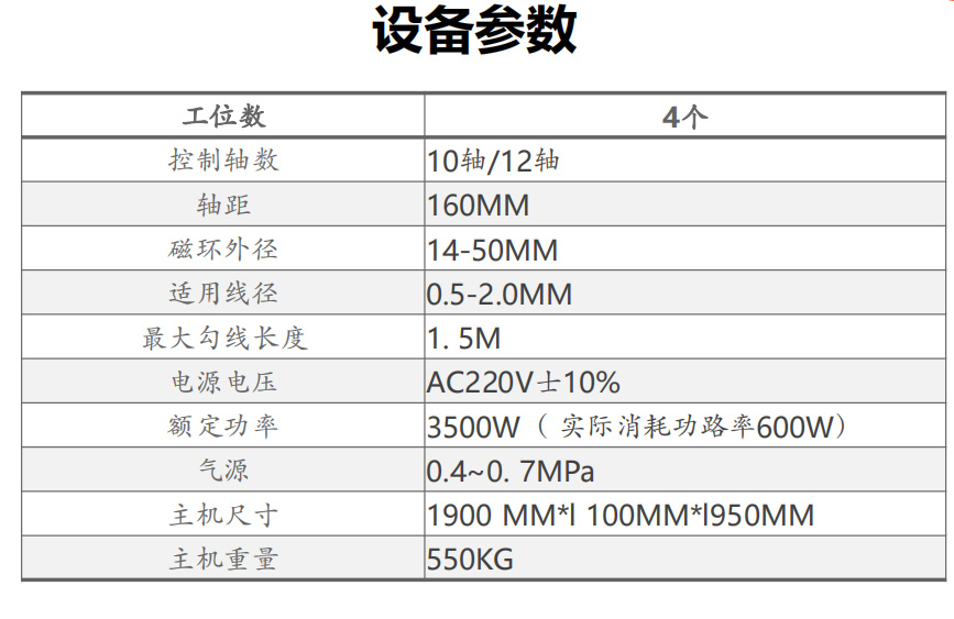 3.快速換型:旋轉(zhuǎn)盤根據(jù)磁環(huán)任意調(diào)節(jié),銅線規(guī)格任意更換,伺服電機(jī)數(shù)量多,機(jī)械位置手動(dòng)調(diào)整少